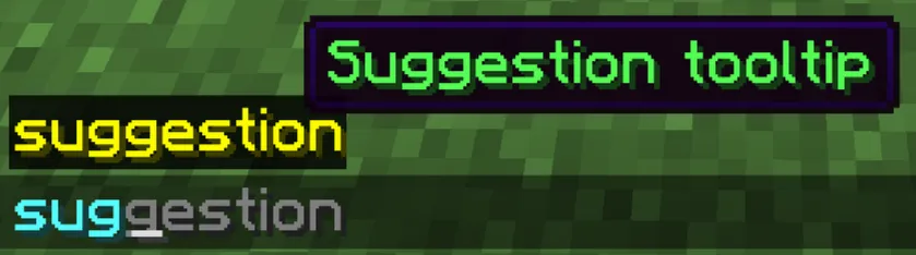 // Here, we use method references, since otherwise, our command definition would grow too big .suggests(SuggestionsTest::getAmountSuggestions) .executes(SuggestionsTest::executeCommandLogic)